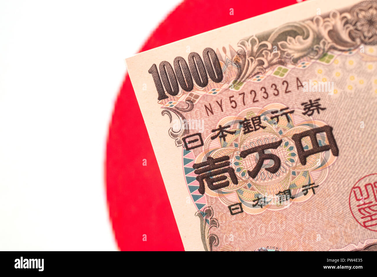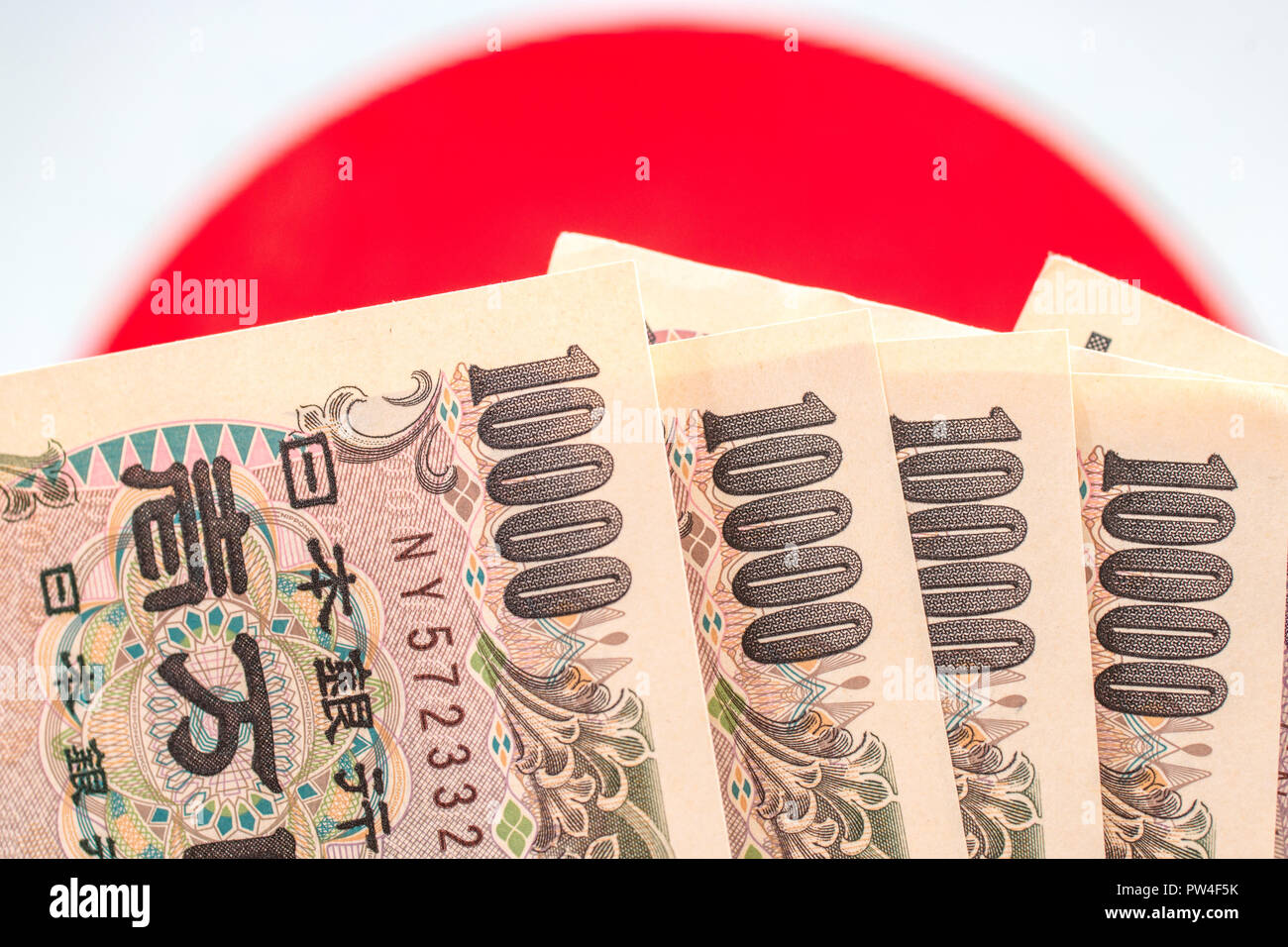 Japanese Currency Notes Japanese Yen On Japanese Flag Stock Photo Alamy