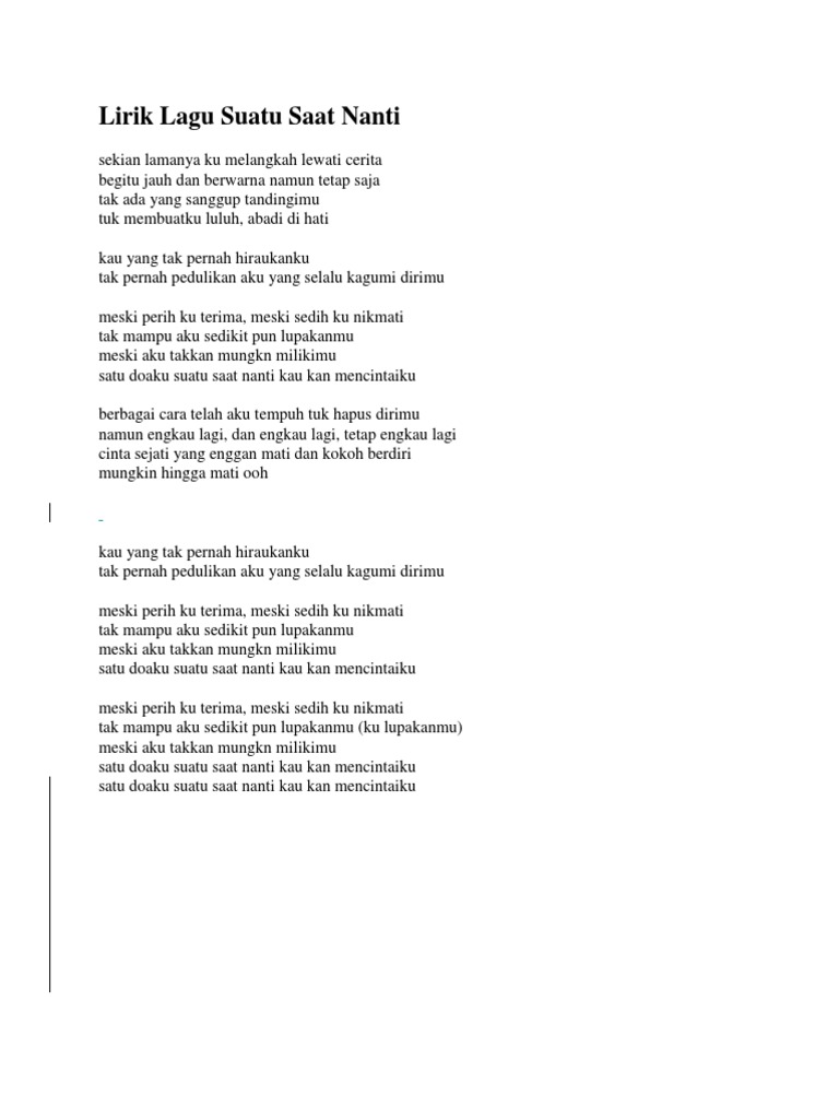 Sukma bilang nanti saja dia ceritakan. Mati tinggal menunggu saat nanti. Lirik Lagu Pilihan Editor Hari Ini.