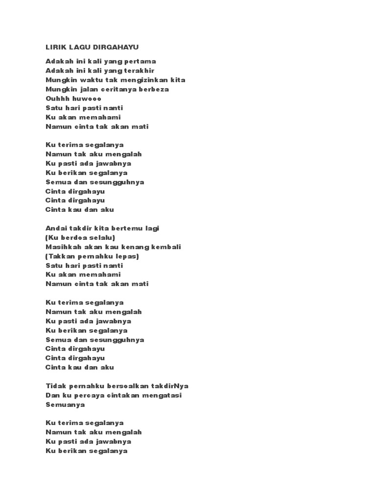 Sedangkan syarat keempat Nikita meminta satu sel dengan Nindy Ayunda jika keduanya sama-sama dipenjara. Setiap langkahku dan mimpiku Kau ada disana Mungkin suatu saat nanti Kau dan aku bersama Berdua kita jalin kasih Dalam satu ikatan cinta Oh. 56 tahun 2021 yang baru ditanda tangan pak jokowi tanggal 30 maret 2021 menyatakan bahwa di kafe dan restoran juga harus bayar kalau dia download lagu Allah Allah Aghisna dan lagunya diputar di tempatnya.